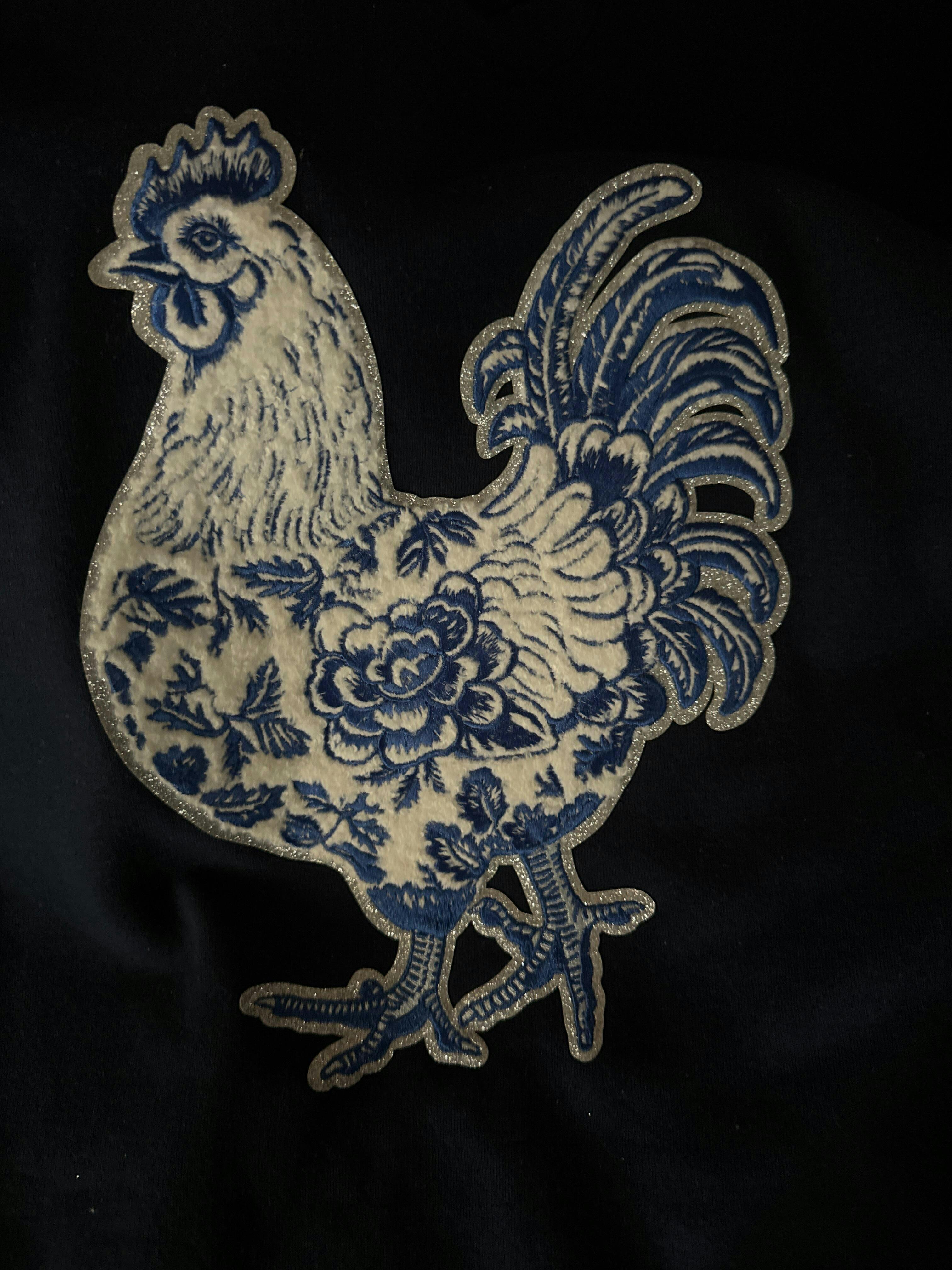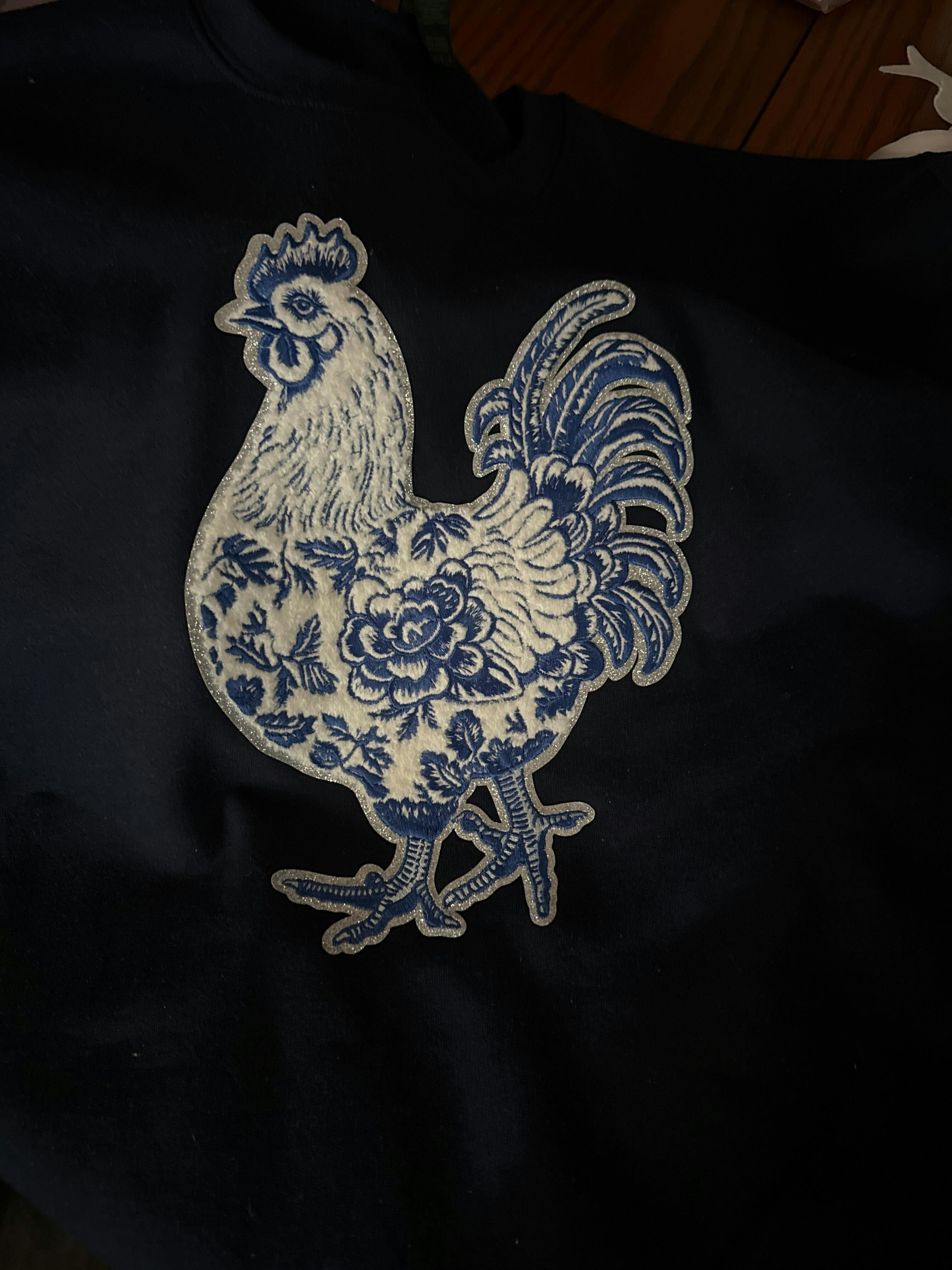Blue Floral Grand Millennial Chicken Chenille Patch