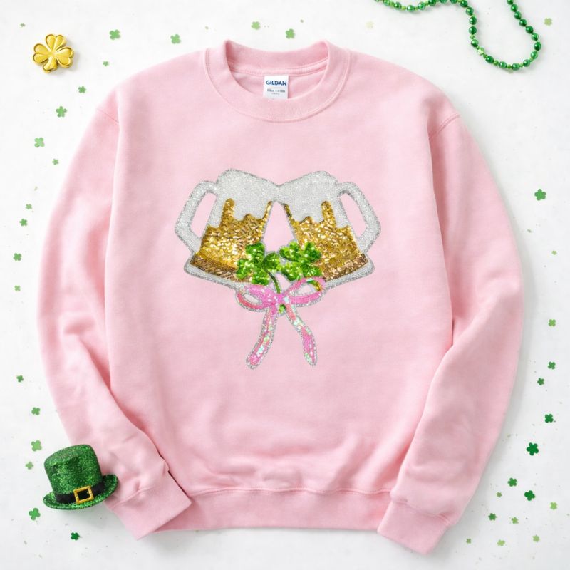 Boozy Bow Beer St Patricks Day Sequin Patch Sweatshirt
