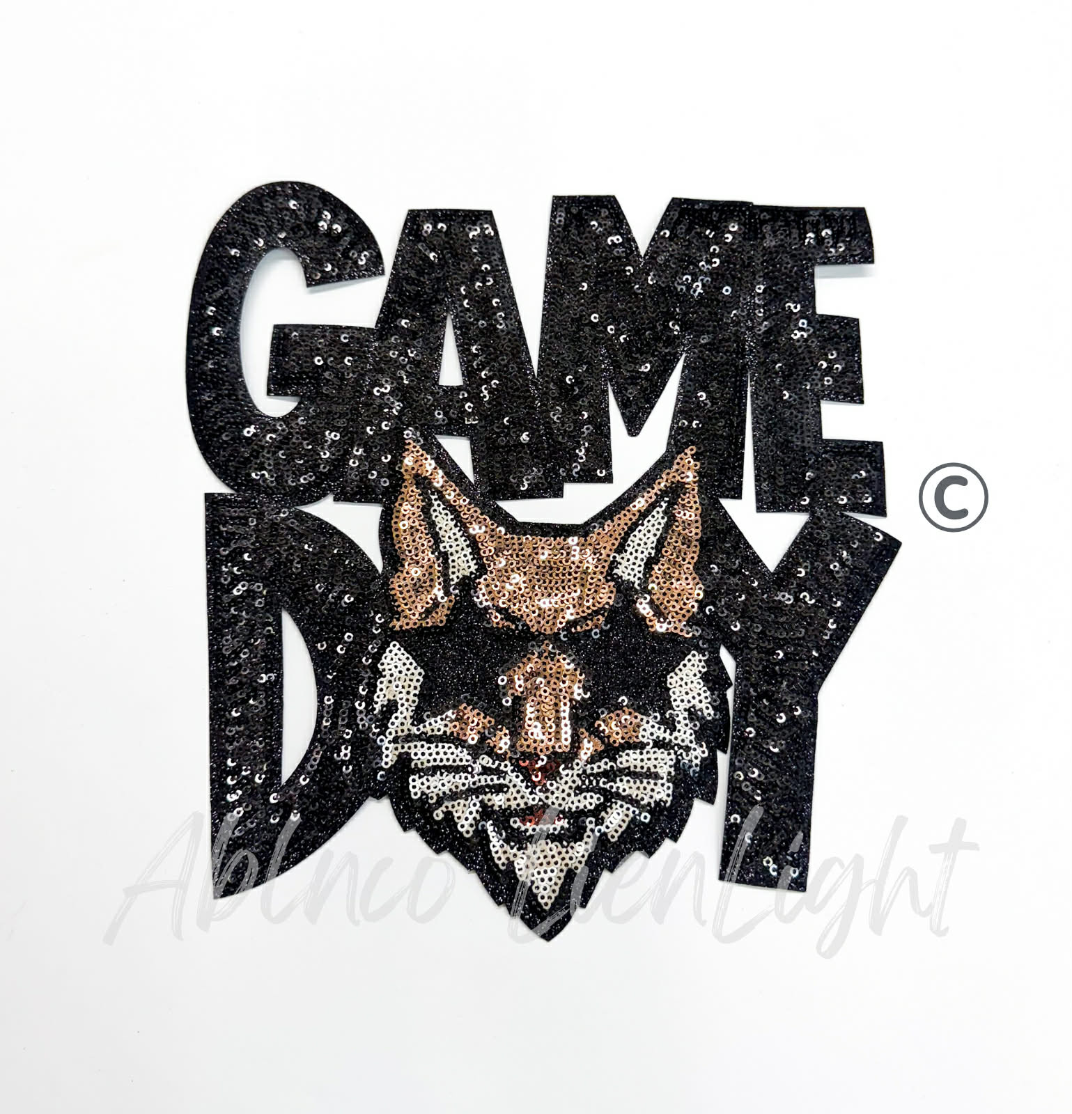 Black Bobcat Game Day Mascot Sequins Patch - Large