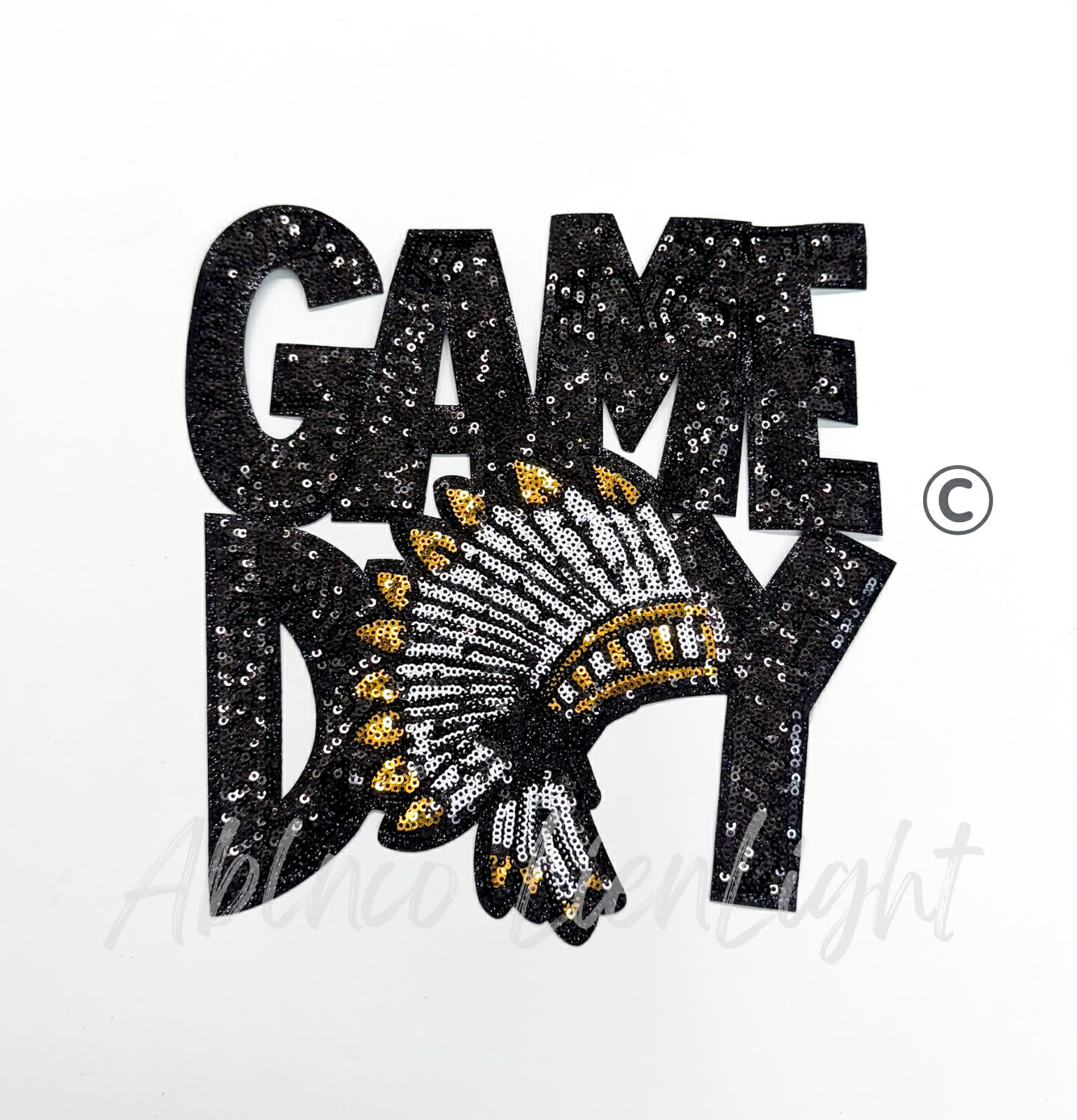 Black Chief Warrior Game Day Mascot Sequins Patch - Large