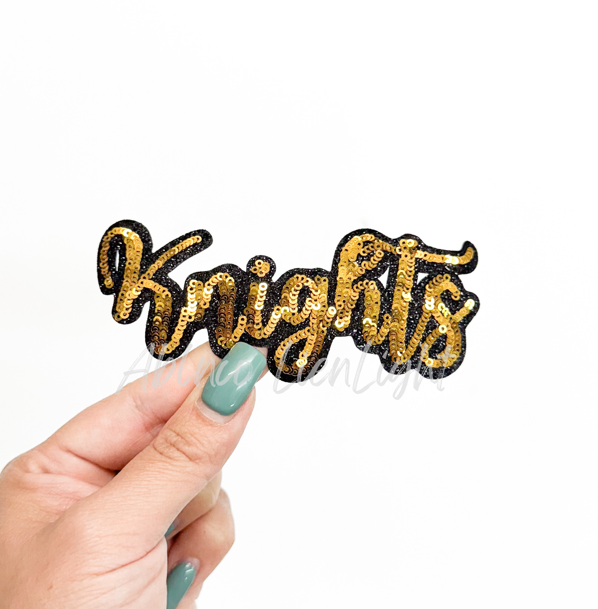 Gold Knights Mascot Script Letter Sequin Patch - Small