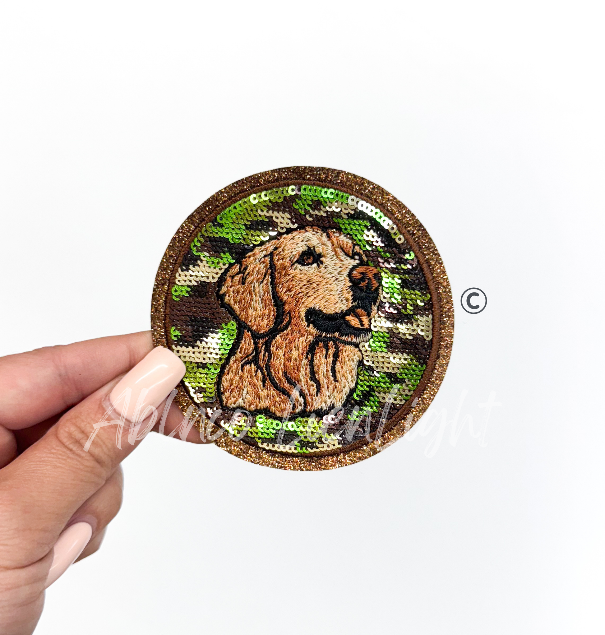 Golden Retriever Dog Hunting Camo Sequin Patch