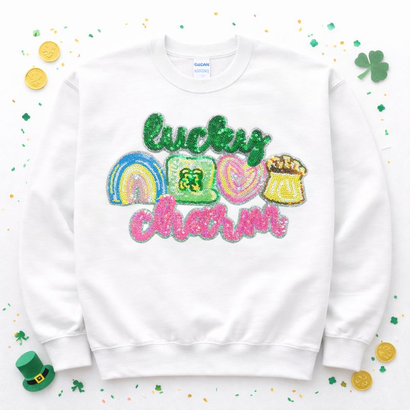 Lucky Charm St Patricks Day Sequin Patch Sweatshirt