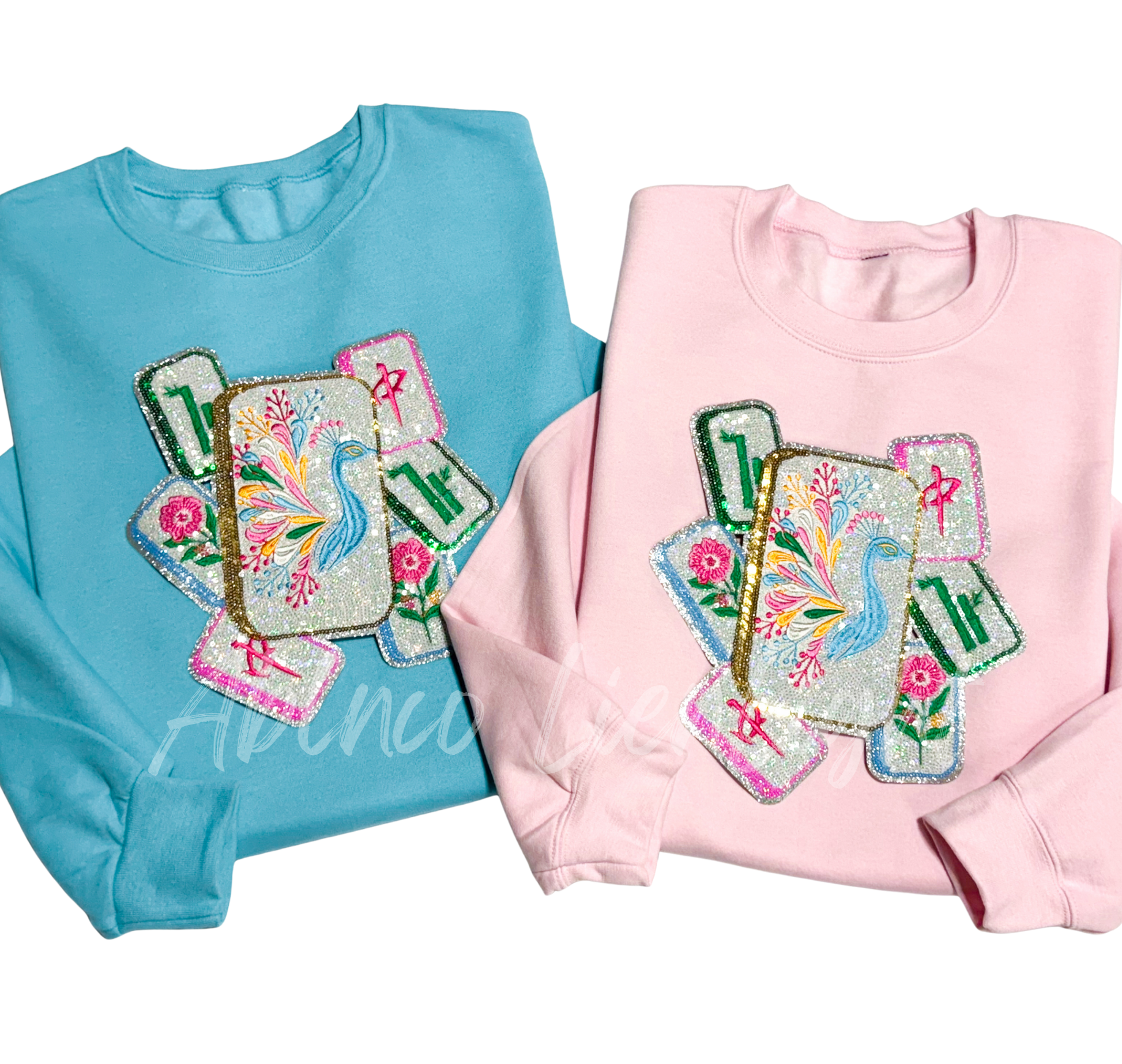 Mahjong Bird Bam Game Tiles Sequins Patch - Large