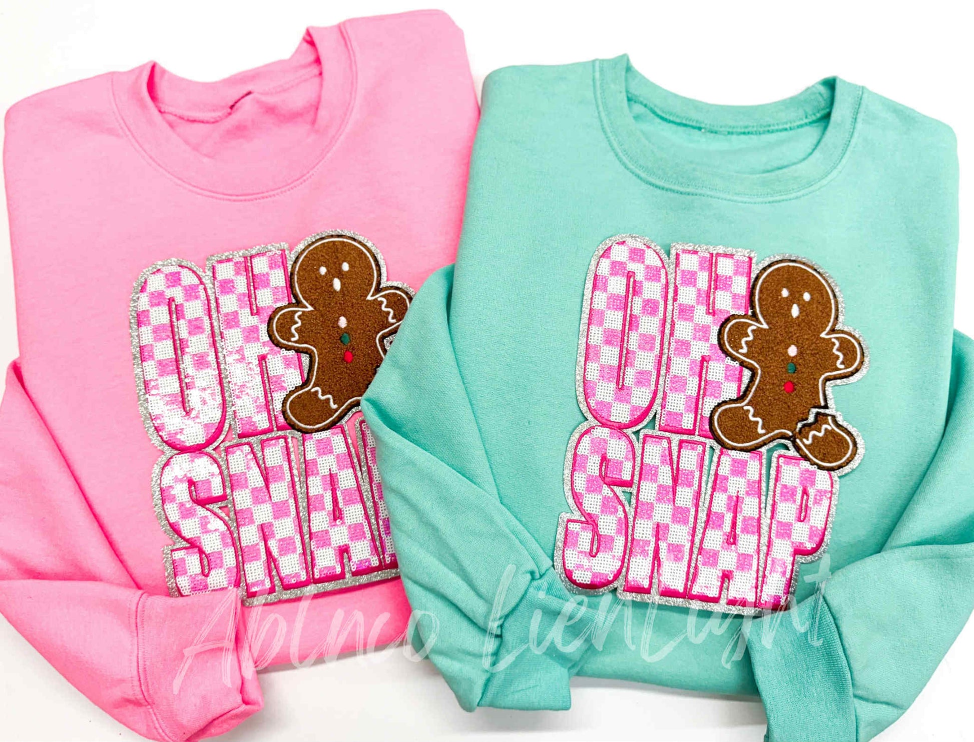 Oh Snap Gingerbread Sequins Christmas Patch Sweatshirt