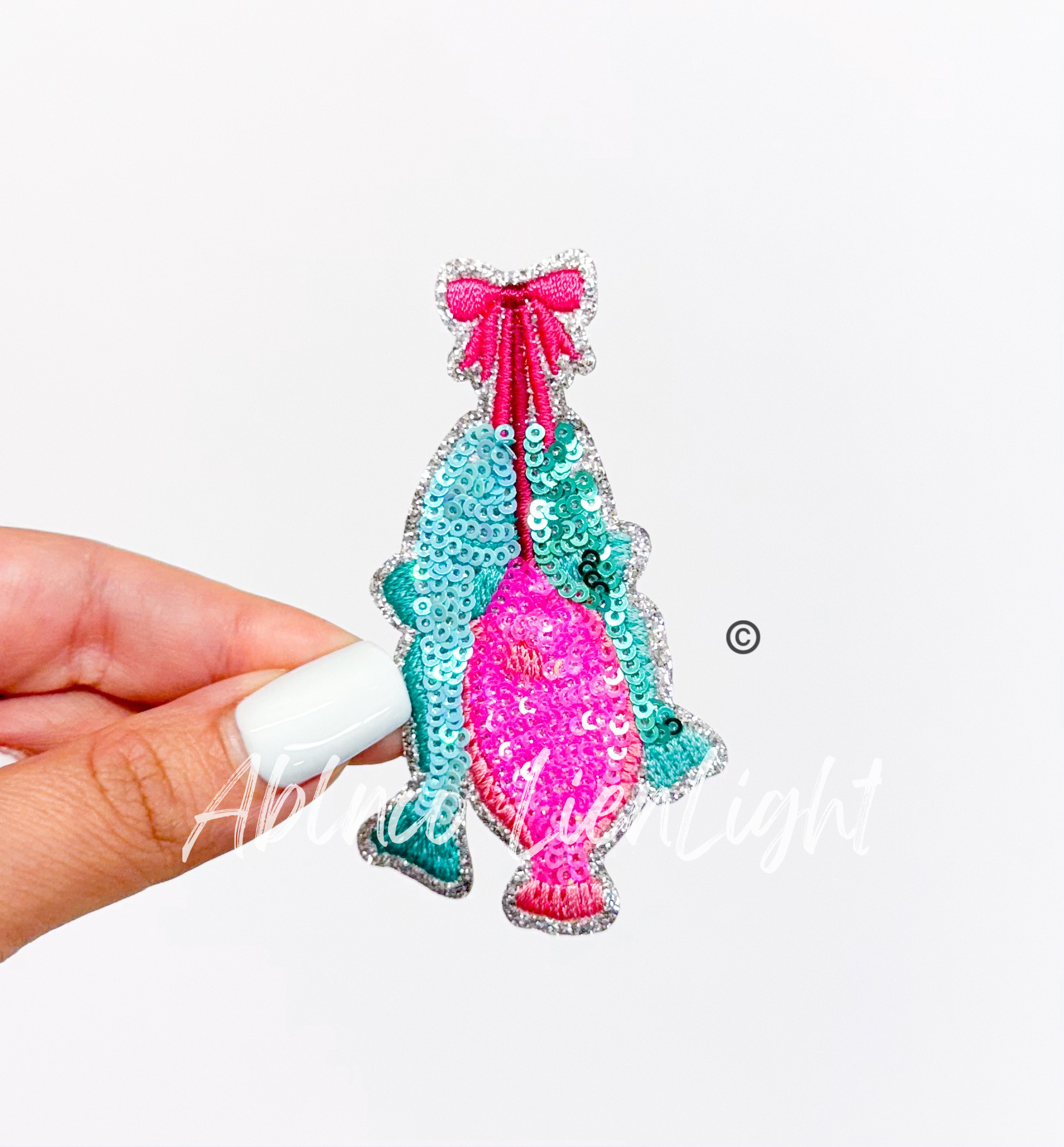 Preppy Pink Glitter Fishing Catch Trio ©️ Fishing String Sequin Patch