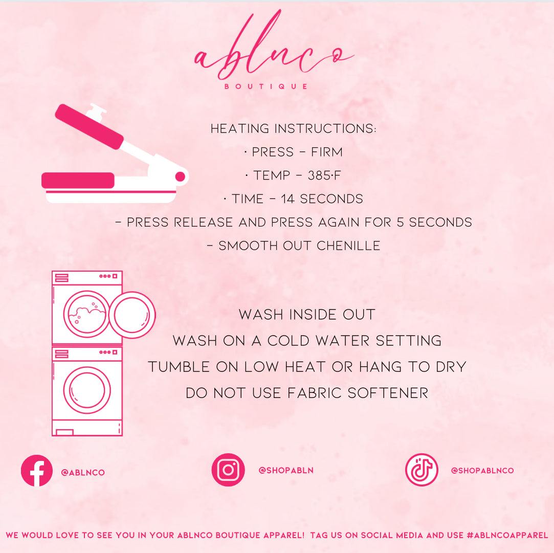 Abln Boutique Patches - very detailed design, high quality chenille, thick patch & adhesive for long lasting wear made with our vibrant signature pink color